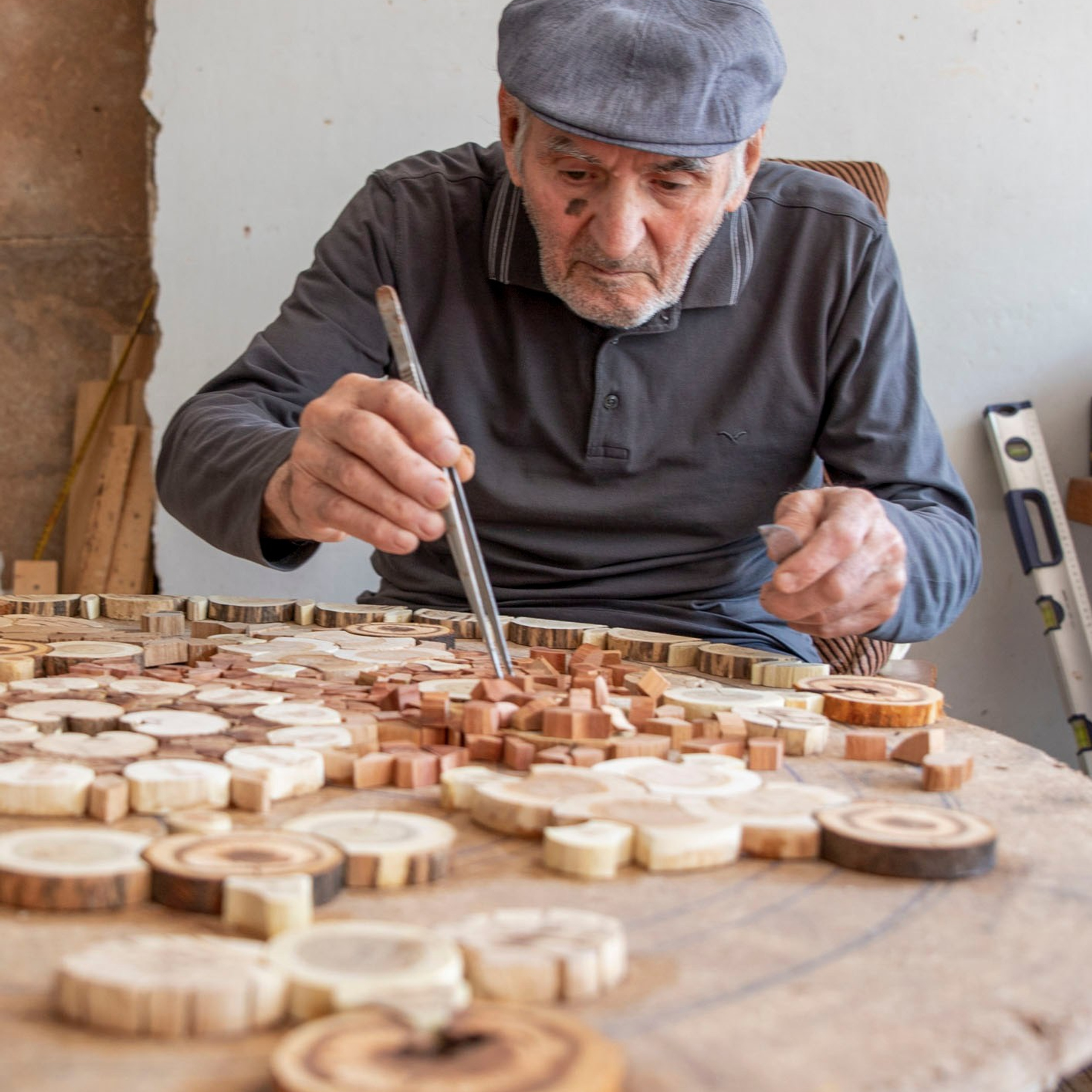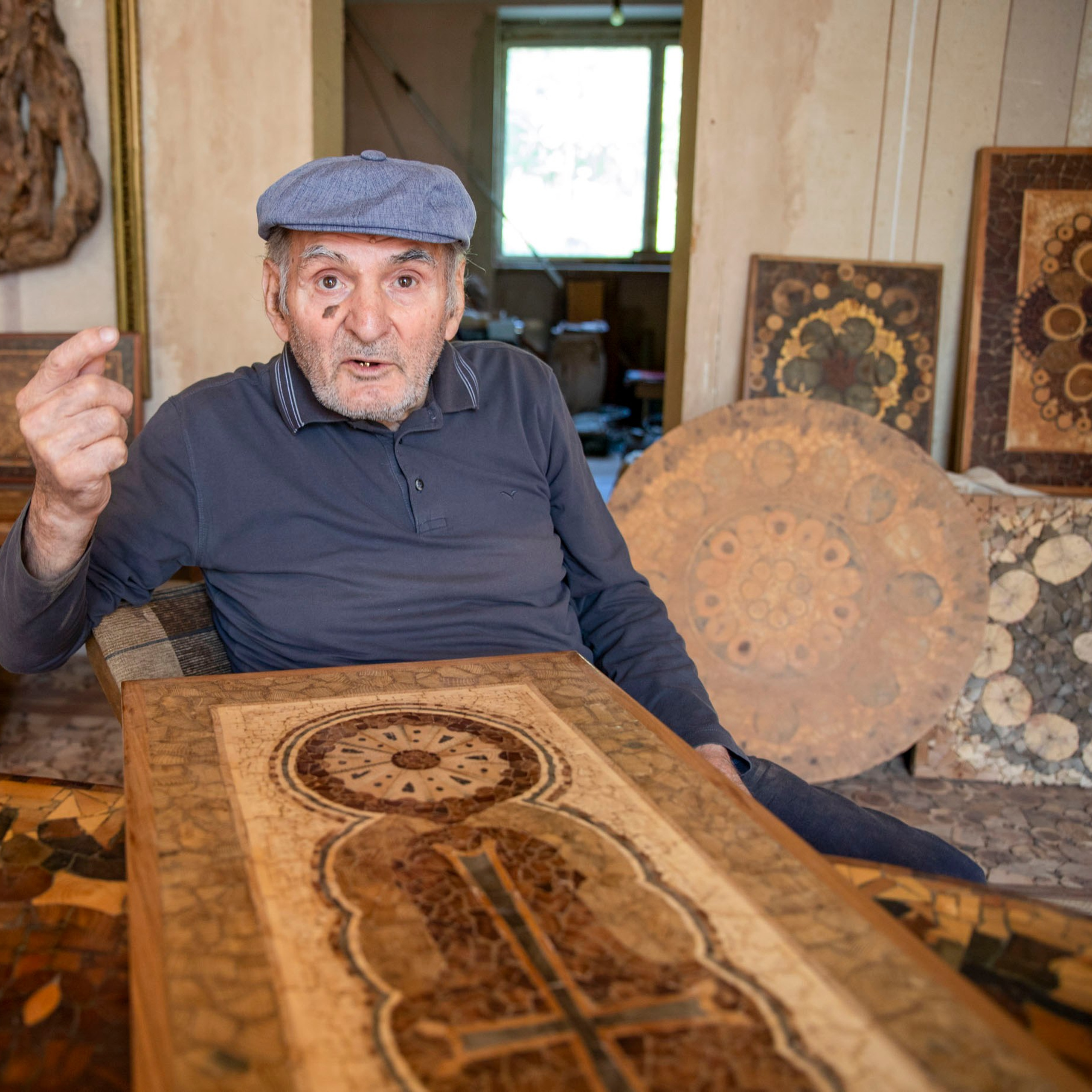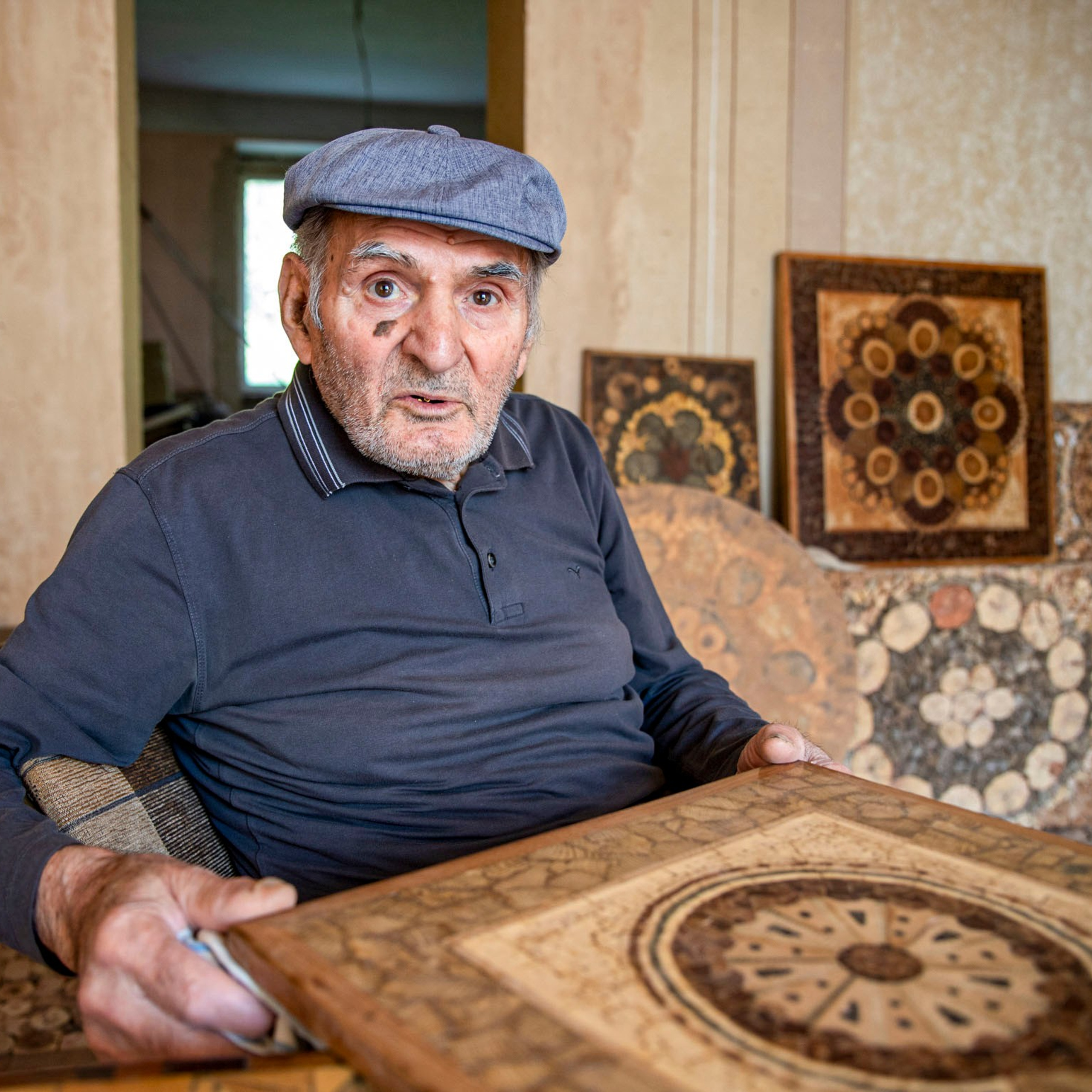 Сегодня дедушка Размик продолжает работать и творить «деревянные чудеса», как он говорит. В работе использует 9 пород дерева. Каждое дерево имеет свой натуральный оттенок и лишь черный цвет он получает путем выдержки в течение 1 года.