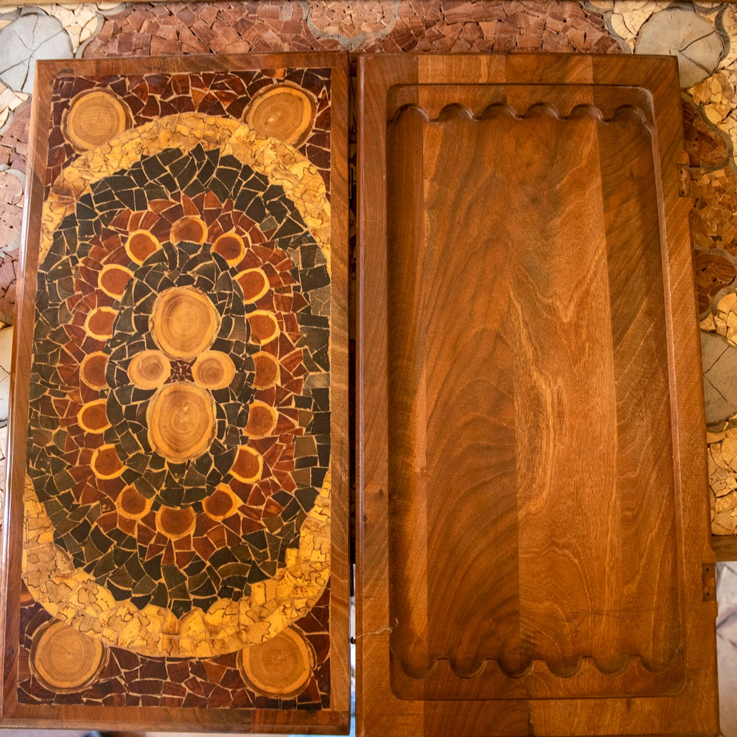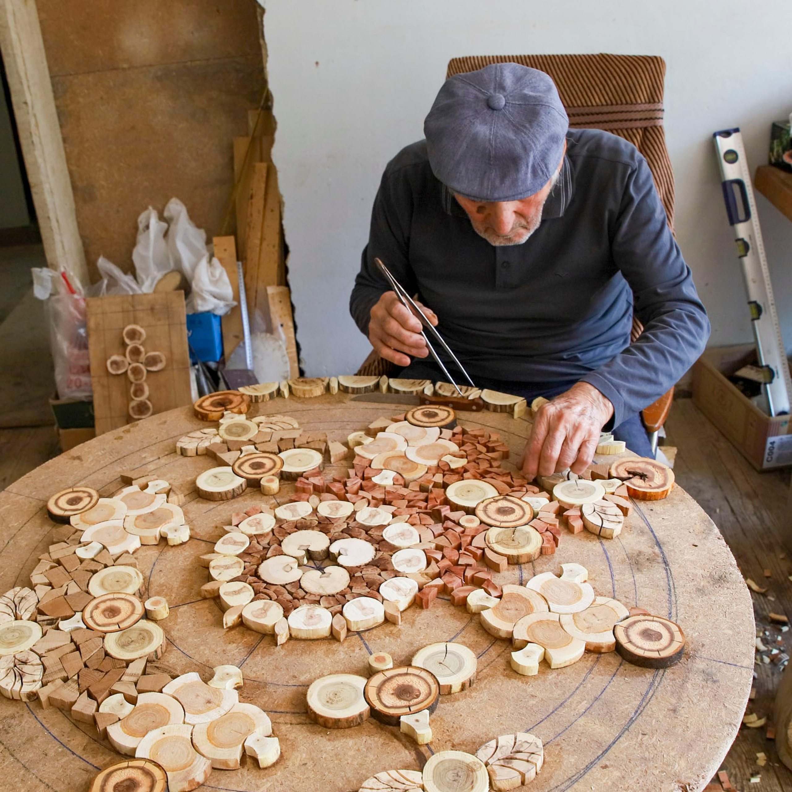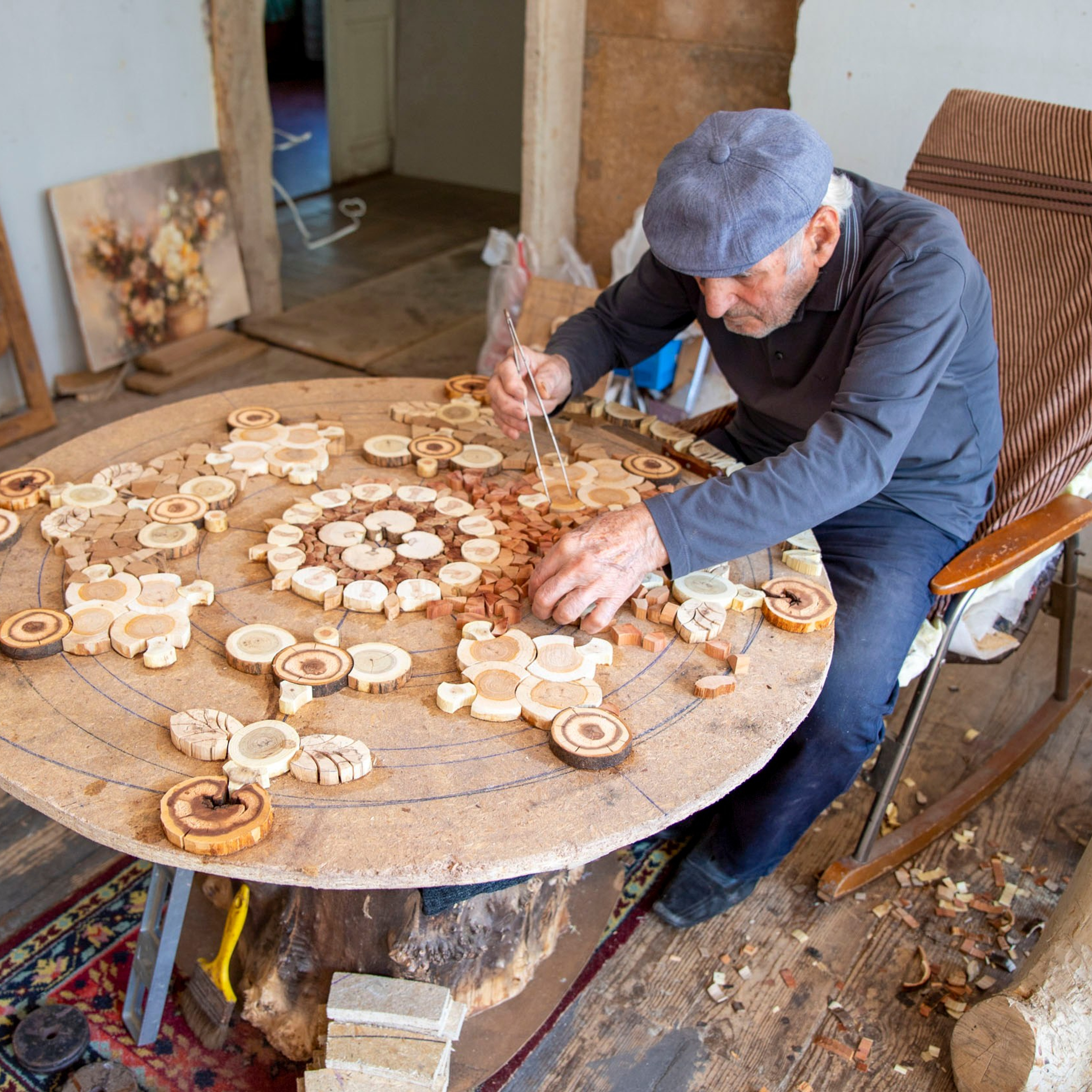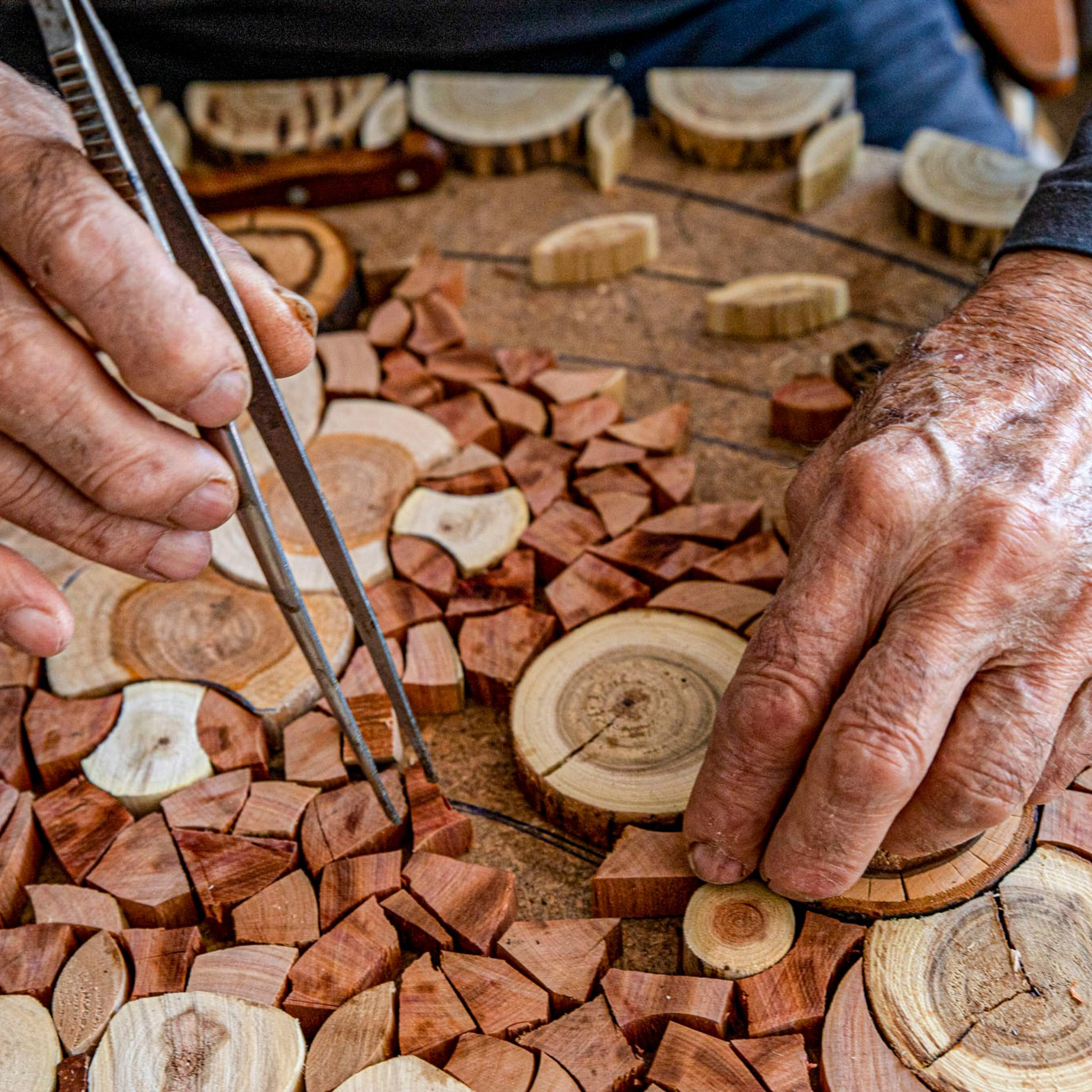 Сегодня дедушка Размик продолжает работать и творить «деревянные чудеса», как он говорит. В работе использует 9 пород дерева. Каждое дерево имеет свой натуральный оттенок и лишь черный цвет он получает путем выдержки в течение 1 года.